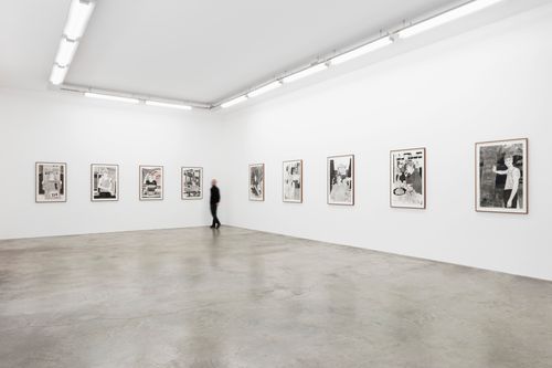 Perrotin is delighted to present The First and the Last, Hernan Bas’s sixth solo exhibition at the gallery. Featuring paintings and works on paper, the exhibition explores the blurred boundaries between reality and fiction, drawing viewers into a world where the extraordinary and the mundane collide. Bas’s work encourages us to reflect on the fragility of life and the nuances of human relationships. Taking inspiration from various sources, such as the recent case of a tourist caught carving his name on the Colosseum in Rome, the artist captivatingly explores the absurdities of existence as well as their poignant beauty.