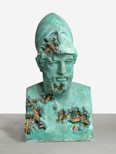 Daniel Arsham, Bronze Eroded Bust of Pericles, 2021. Bronze, polished stainless steel. 199x107x 97 cm.