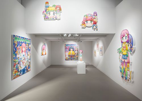 Mr.’s solo presentation includes a wide range of media—paintings, shaped canvases, sculptures, and works on paper—where his neo-pop language embodies the otaku and youth subcultures of post-war Japan in which he grew up. The often sparkling spirit of his manga-influenced figures belies an underlying darkness and desire for escapism, shaped by deep-rooted experiences of family trauma and collective national trauma in the aftermath of the 2011 earthquake and tsunami.