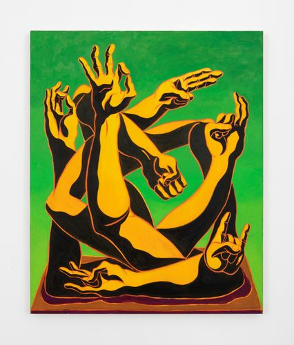 Finger Bang, curated by sculptor Genesis Belanger and painter GaHee Park, surveys the work of 22 living artists who depict fingers and hands to various ends and effects. The results are wide-ranging but all can agree that the hand remains an area to be mined for psychological, sexual, and political meanings. Much of the work in the exhibition is of a surrealist bent and, in keeping with that, bodily imagery pervades. Fingers and hands appear where they shouldn’t be, often severed or separate from their host body.