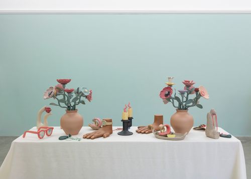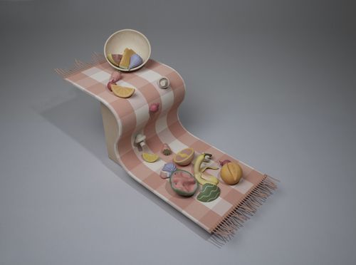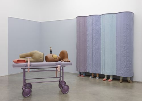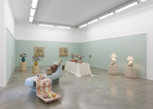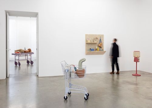 three linked mise-en-scènes—a closeout sale, banquet hall,