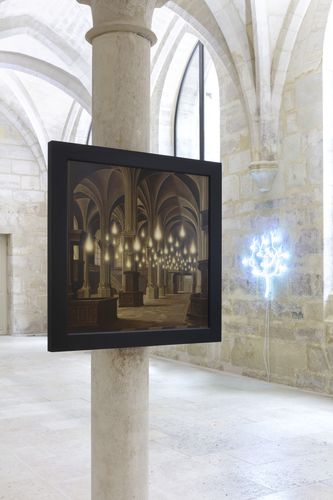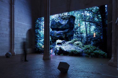 The exhibition project revolves around the enigmatic Mont Sainte-Odile, in the Vosges mountains, and has been deployed through a new film, paintings and light installations, to explore and reveal the invisible forces and energies of this magnetic site.