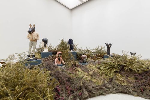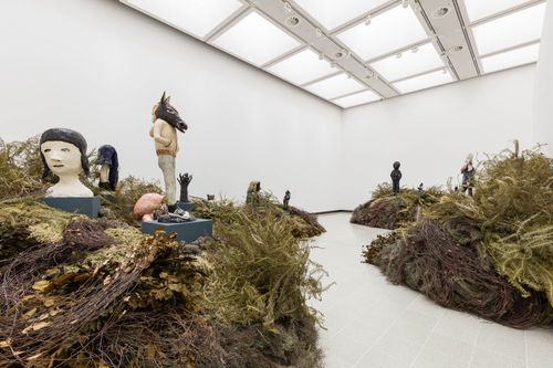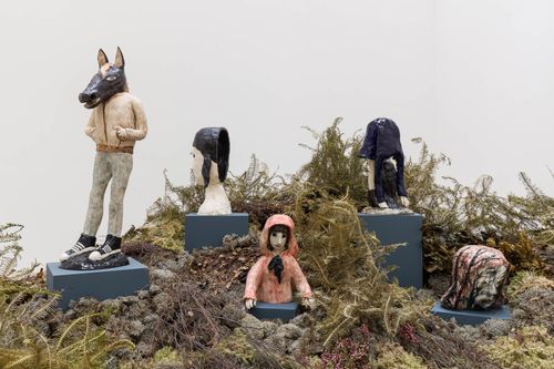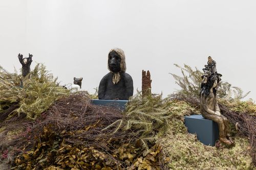On this occasion, fantastical creatures are displayed in a botanical installation from Klara Kristalova, featuring plants and ceramic sculptures.