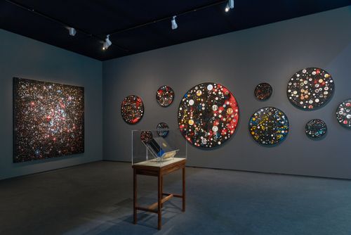 Galaxy Mandala, a new body of circular works drawing on symbolic elements of the mandala as a representation of the universe and reflections on life and existence.