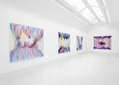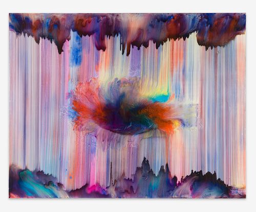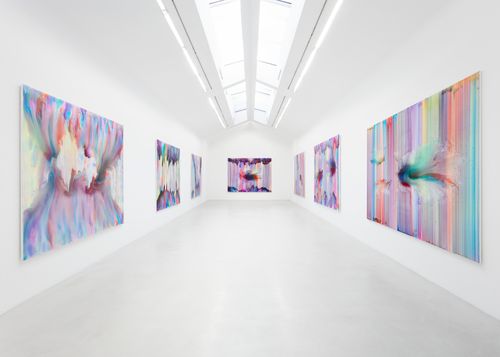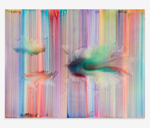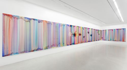For over forty years Bernard Frize has been inventing procedures for making paintings without exactly knowing or predicting the visual outcome. He has explained that the process of painting is more important than whether the final result is aesthetically pleasing, although it turns out that they often are. By establishing procedures he removes himself as best he can from the work, to reduce the sense of self-expression to the barest minimum. As an artist who began working in the 1970s, at the height of minimal and conceptual art, he was, of course, aware of such artists as Sol LeWitt, whose ‘Paragraphs on Conceptual Art’ first appeared in Artforum in Summer 1967, but Frize’s approach was different. LeWitt, for the most part, did not execute his work but left it to assistants. Frize required assistance in executing one series of paintings when he needed many hands to manipulate brushes simultaneously, but mostly he makes art on his own. His hand is therefore involved. Whereas LeWitt described his work as emotionally dry, because from his point of view it was executed as though by a machine, Frize’s work is cool but can provoke an emotional response. LeWitt’s art was manufactured industrially or drawn on a wall. Frize makes paintings on canvas with visible brush marks where colour is embedded in a resin surface. It has the illusion of facture, although none whatsoever. Moreover there is a strong sense of wit and the absurd in Frize’s work. LeWitt was not immune to absurdity – think of his Location pieces where the text describing the actions to be taken to execute a simple geometric figure, such as a triangle or a square, is so complex that it requires quite a strong logical mind to decode it. The mental effort required to draw a simple form is enormous. This mixture of complexity and simplicity, of detail and ludicrous outcome was comparable in many ways to the novels of the nouveau roman movement.