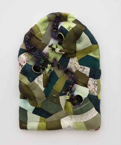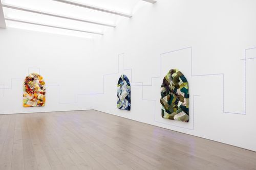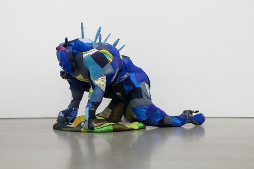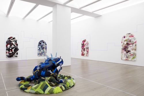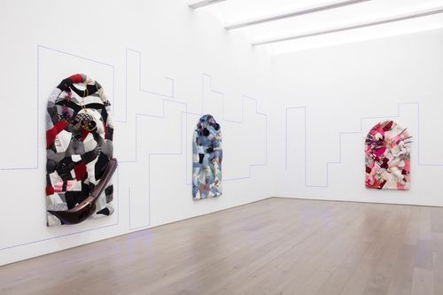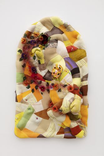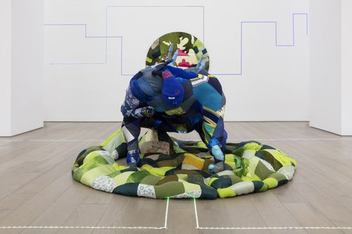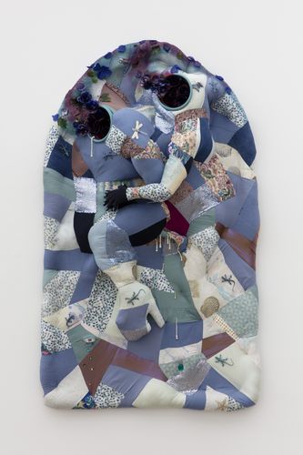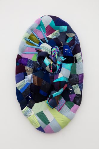 Perrotin is pleased to present TOYMAKER: Big blu & The Weeping walls!!, an exhibition of new work by Trevon Latin on view at Perrotin New York. In the artist’s application of textures, such as sequined cloth and quilted fabrics, canvas, found objects, beads and barrettes, Latin’s work seeks to engender narrative and world-making through the media of painting, sculpture, installation, and performance.