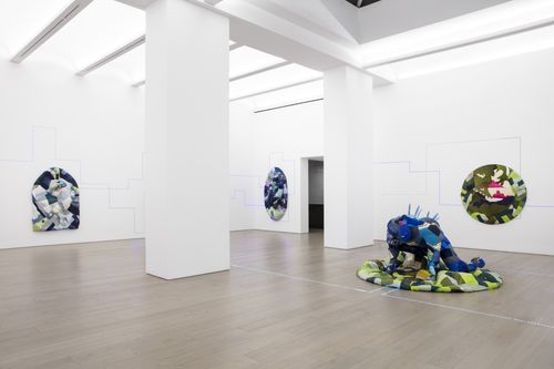 Installation view of 'TOYMAKER: Big blu & the Weeping walls!!' by Trevon Latin at Perrotin New York, 2023. Photographer: Guillaume Ziccarelli.