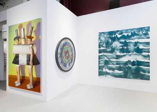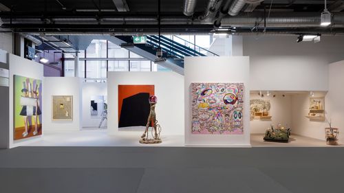 Installation views of Perrotin's booth at Art Basel, 2023. Photo : Claire Dorn. Courtesy of all artists and Perrotin.  ©ADAGP/ Paris 2023. ©2023 Takashi Murakami/Kaikai Kiki Co., Ltd. All Rights Reserved. Courtesy Perrotin.