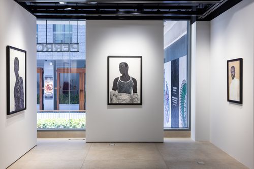 View of Elladj Lincy Deloumeaux's exhibition 'Souvenirs Entrelacés' at Perrotin Dubai, 2023.